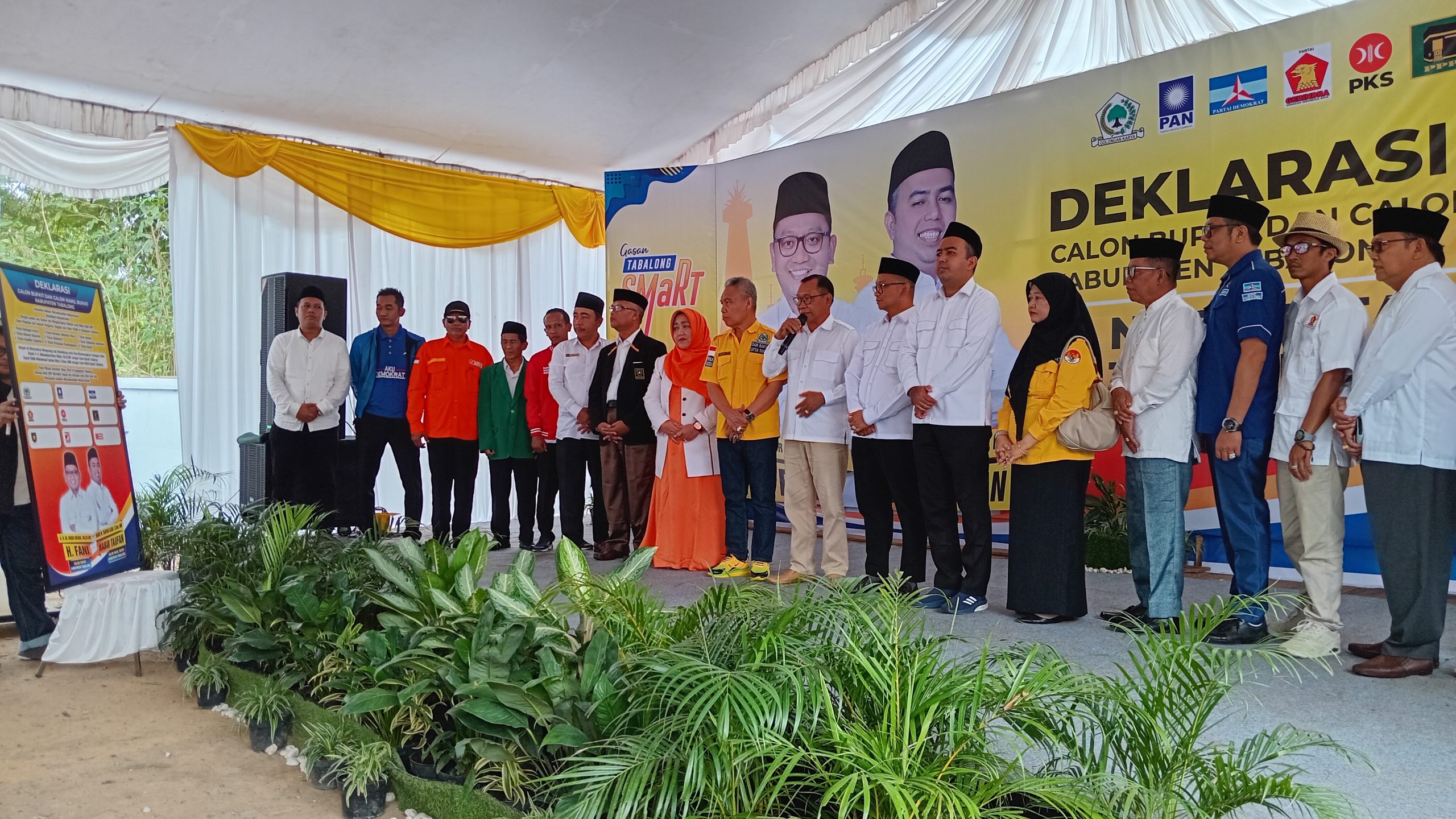 Dalam sambutan Deklarasi, H Fani didampingi Habib Taufan menyatakan dukungan sembilan Parpol terhadap dirinya merupakan aspirasi masyarakat yang mendukung Tabalong Smart.